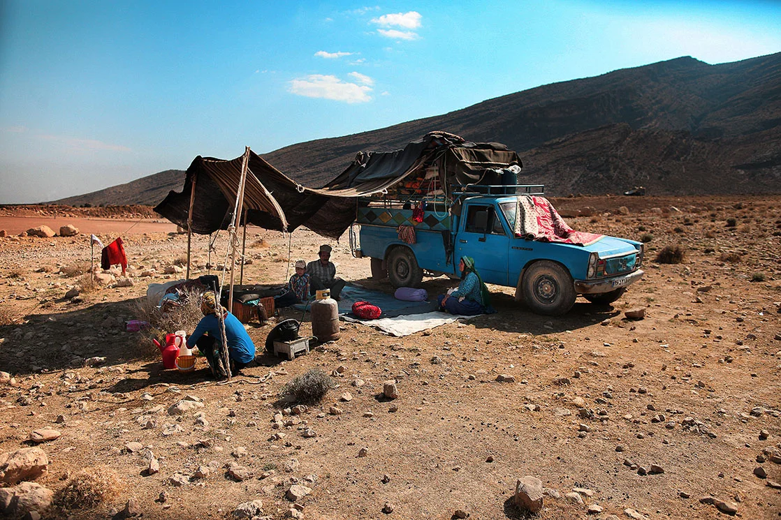 Qashqai family in transhumance. The camels, horses and donkeys are increasingly replaced by four-wheel-drive vehicles or trucks / Famille de Qashqais en pleine transhumance. Les chameaux, les chevaux et les ânes sont de plus en plus remplacés par des véhicules tout terrain ou des camions | IRAN