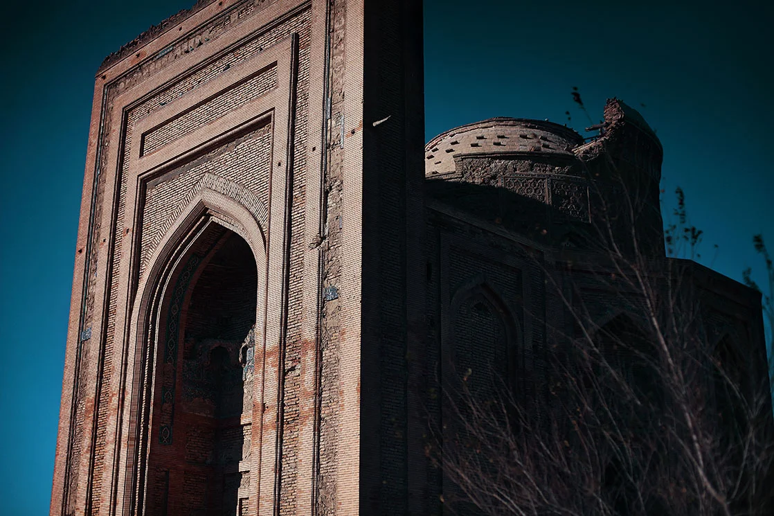 The Turabek Khanum funeral mosque dates back to Tamerlane (14th century). It is one of the rare architectural marvels still standing in the Khorezm region / La mosquée funéraire de Turabeg Khanoum date du siècle de Tamerlan (XIVe) | TURKMENISTAN