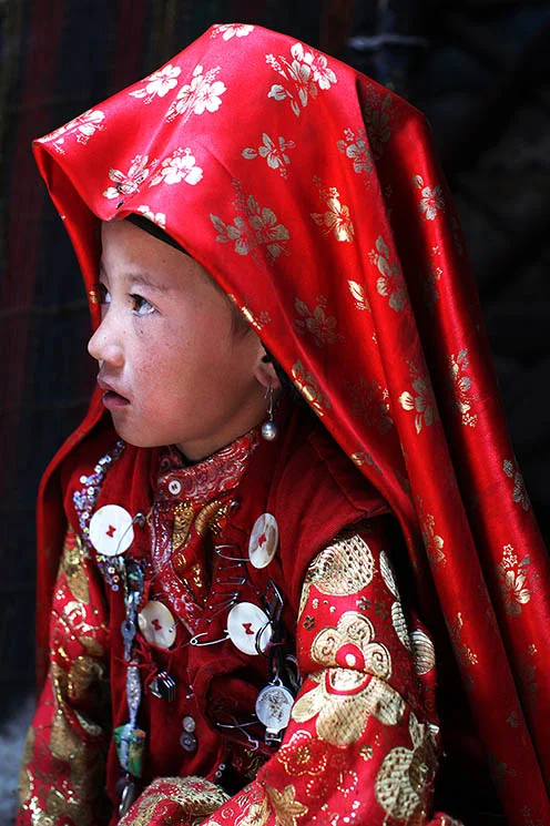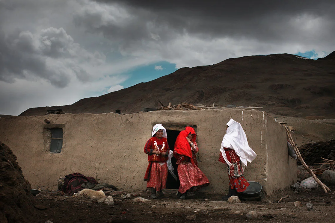 In the villages of Wakhan Corridor, families perform unchanging rituals. The women with their heads covered in white are married, the ones in red aren’t / Dans les villages du corridor du Wakhan, les familles s'organisent autour de rites immuables. Les femmes couvertes de voiles blancs sont mariées, celles en rouge ne le sont pas | AFGHANISTAN