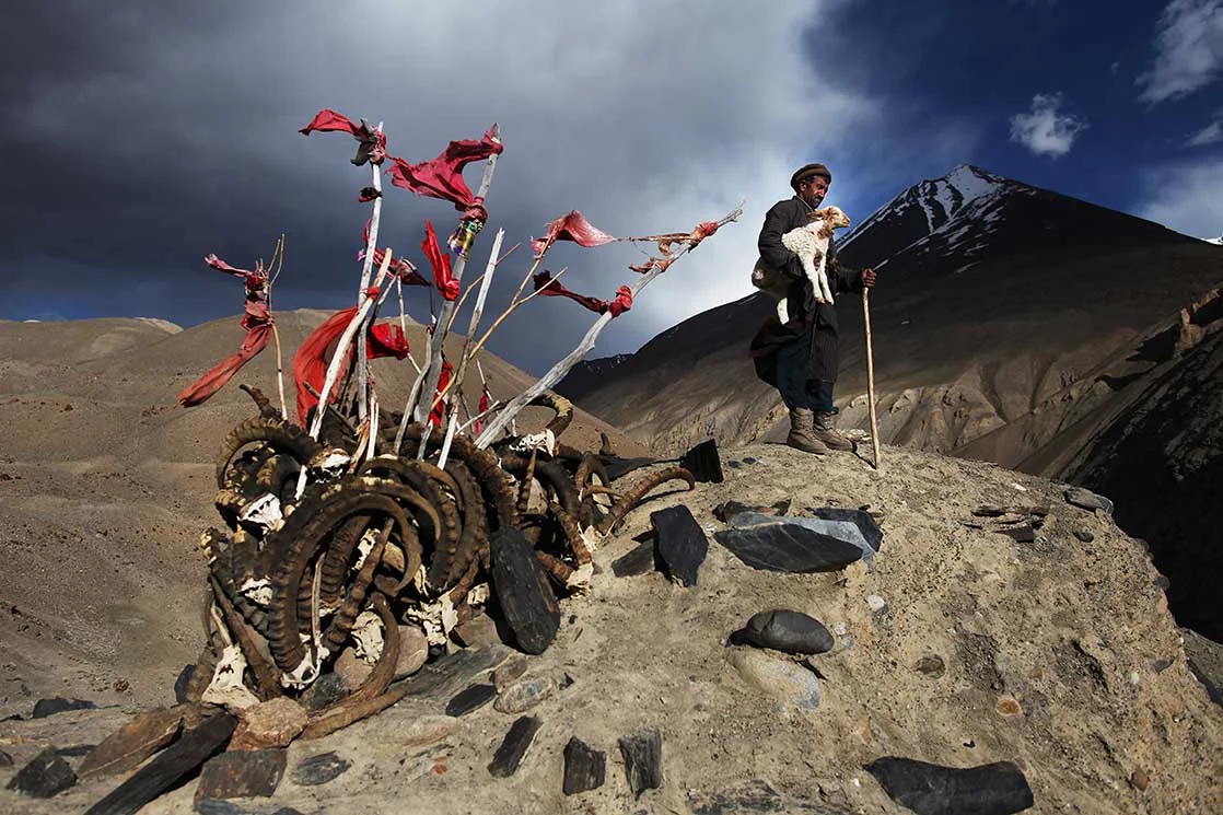 In Langar you can see ibex horns and pieces of cloth, which could have been used for pre-Islamic rituals or linked to Ismaili faith / Entre rite préislamique et foi ismaélienne, des cornes d’ibex et des tissus flottent au vent à Langar | AFGHANISTAN